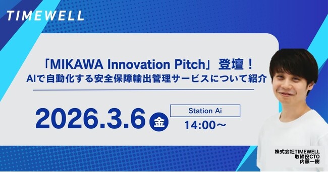 【愛知】株式会社TIMEWELL、3月6日開催「MIKAWA Innovation Pitch」に登壇し、AIで自動化する安全保障輸出管理サービスについて紹介!