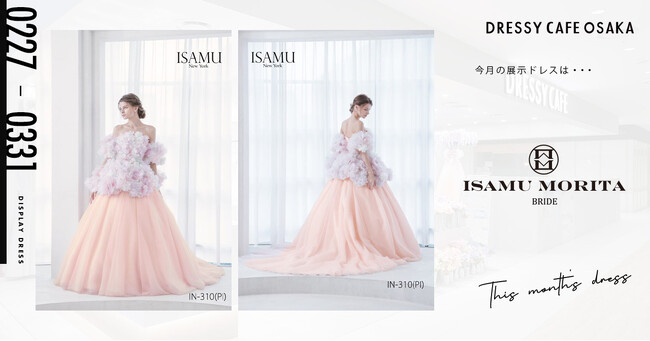 【DRESSY CAFE OSAKA】3月のディスプレイドレスは「ISAMU MORITA BRIDE」のウェディングドレスを期間限定でお届けいたします。