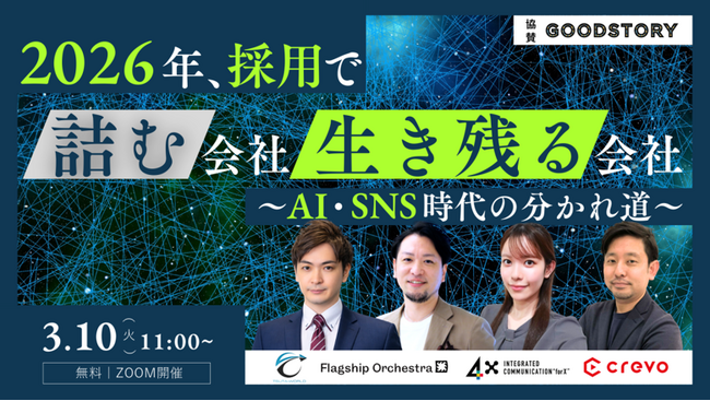 ブランドと社会をつなぐ伴走型コミュニケーションカンパニーとして、戦略設計からWeb、SNS、動画などコンテンツにまつわるあらゆる施策を提供する株式会社4X(本社:東京都中央区、代表取締役社長:家口 寛、以下「4X」)は、3月10日(火)11:00~共催ウェビナー「2026年、採用で詰む会社・生き残る会社 ~AI・SNS時代の分かれ道~」へ登壇いたします。
