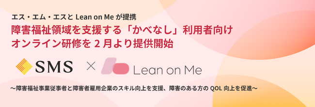 株式会社エス・エム・エス(本社:東京都港区、代表取締役社長:高畑正樹、東証プライム、以下「当社」)は、障害福祉領域に特化したeラーニング事業を展開する株式会社Lean on Me(本社:大阪府高槻市、代表取締役:志村駿介、以下「リーンオンミー社」)と提携し、2026年2月より「かべなしオンライン研修 powered by Special Learning」「かべなし研修室 powered by Special Learning for business」の提供を開始しました。