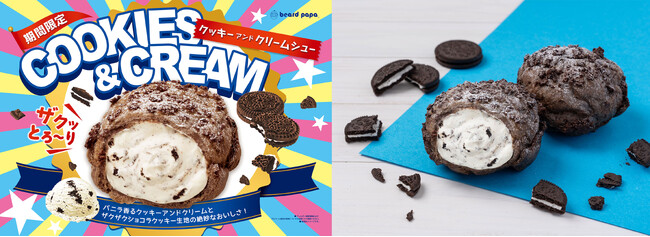 【ビアードパパ】毎年大好評“クッキーアンドクリームシュー”が期間限定で登場!バニラ香るなめらかなクッキークリームとザクザク食感のショコラクッキー生地が絶妙な美味しさ