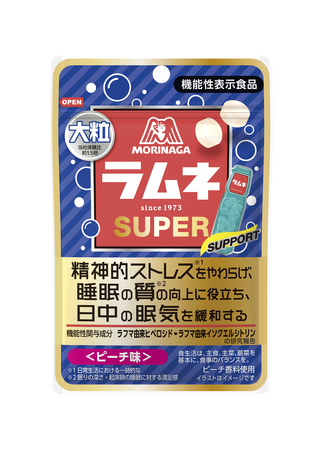 森永製菓株式会社(東京都港区芝浦、代表取締役社長COO・森 信也)は、ひと粒が通常のラムネの約 1.5 倍(当社体積比)のサイズで食べ応えのある「大粒ラムネ」シリーズから、ラフマ葉抽出物を配合した機能性表示食品「大粒ラムネSUPER<ピーチ味>」を3月3日(火)より新発売いたします。