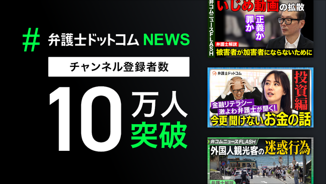 「弁護士ドットコムニュース」公式YouTubeチャンネル、チャンネル登録者数10万人突破のお知らせ
