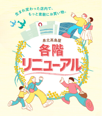 高島屋泉北店は、2026年3月11日(水)より順次、各階リニューアルオープンいたします(※一部売場は2月28日(土)より先行オープン)。泉ケ丘エリアのお客様の多様なライフスタイルに寄り添い、ファミリーで楽しめるファッションブランドなど新規9店舗に加え、7店舗をリニューアルいたします。駅周辺を中心に活性化が進む泉ケ丘エリアにおいて、本リニューアルを通じて、まちのにぎわい創出と地域活性化に貢献してまいります。