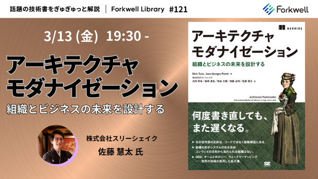 株式会社スリーシェイク(本社:東京都中央区、代表取締役社長:吉田 拓真、以下スリーシェイク)は、2026年3月13日(金)に開催される「アーキテクチャモダナイゼーション - Forkwell Library#121」でスリーシェイク エンジニアが登壇します。