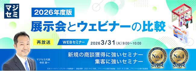 マジセミ株式会社は「【再放送】2026年版 展示会とウェビナーの比較」というテーマのウェビナーを開催します。