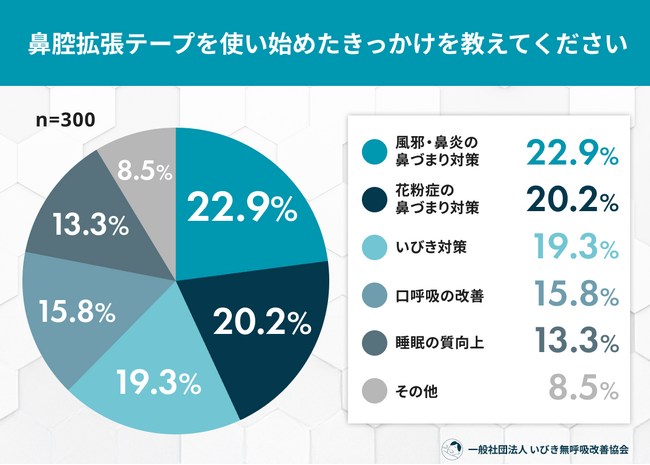 Q1. 鼻腔拡張テープを使い始めたきっかけを教えてください[画像1: https://prcdn.freetls.fastly.net/release_image/23848/80/23848-80-941e7434938135c5df1e581798c37ad3-1074x767.png?width=536&quality=85%2C75&format=jpeg&auto=webp&fit=bounds&bg-color=fff ]