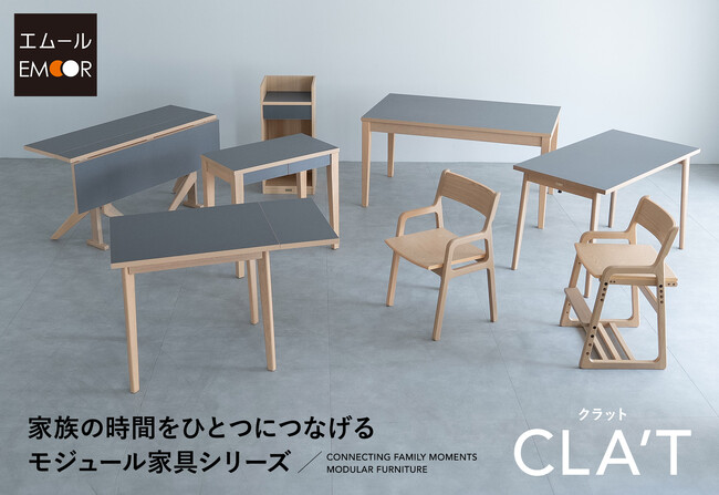 健康家具ブランドEMOORは、子供の成長や親の働き方の変化など、暮らしの変化に合わせて使い方を変えられるモジュール型家具シリーズ『CLA’T(クラット)』の販売を開始しました。
