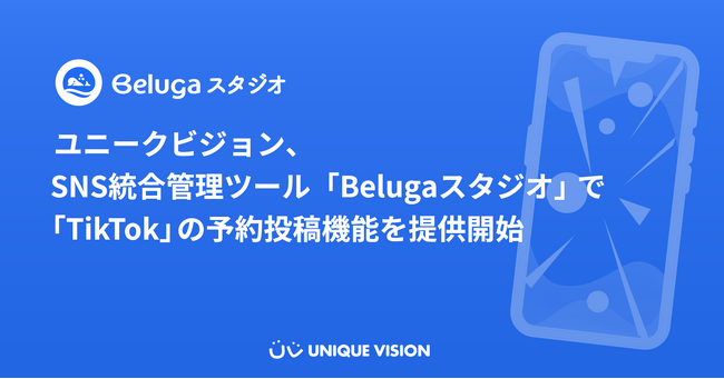 ユニークビジョン株式会社(所在地:東京都渋谷区、代表取締役社長:白圡 良之、以下 当社)は、当社が提供するSNS統合管理ツール「Belugaスタジオ」にて、新たに「TikTok」における投稿管理機能の提供を開始しました。本機能の追加により、Webブラウザ上の管理画面にて動画・画像の予約投稿が可能となり、承認ワークフローを経た安全かつ効率的なTikTok運用を実現します。