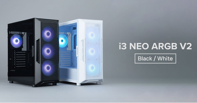 ZALMAN社製、4基のアドレサブルRGBファンとアドレサブルRGBコントローラーを搭載したミドルタワー型PCケース 「i3 NEO ARGB V2」シリーズを発表