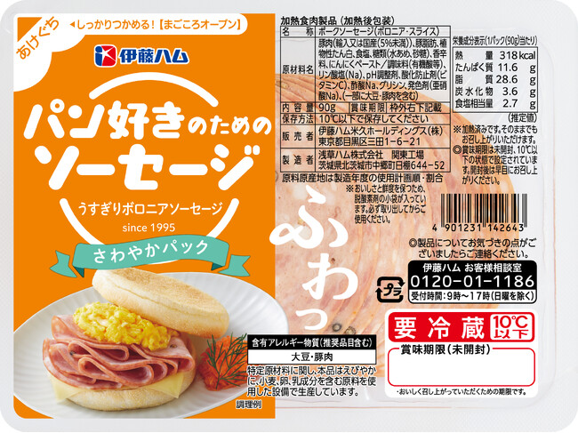 伊藤ハム株式会社は、「さわやかパック」を“うすぎり”だからパンに合う、パン好きのための商品としてコンセプトをアップデートし、31年ぶりにパッケージを刷新します。また、新商品として「パン好きのためのソーセージ うすぎりボロニアソーセージ」を発売します。