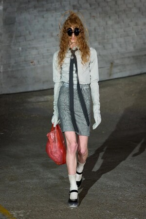 その世界観の中心にあるのは、やはりシューズです。透明なソールや誇張されたフォルムがコレクション全体を奇妙な世界へと誘います。