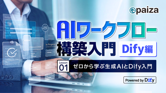 ITエンジニア向け転職・就職・学習プラットフォーム「paiza(パイザ)」を運営するpaiza株式会社(東京都港区、代表取締役社長/CEO 舘康人)は、本日より、ノーコードで高度なAIアプリケーションを開発・運用できるツール「Dify」を活用した新講座「AIワークフロー構築入門Dify編」の「ゼロから学ぶ生成AIとDify入門」を本日より無料公開いたします。
