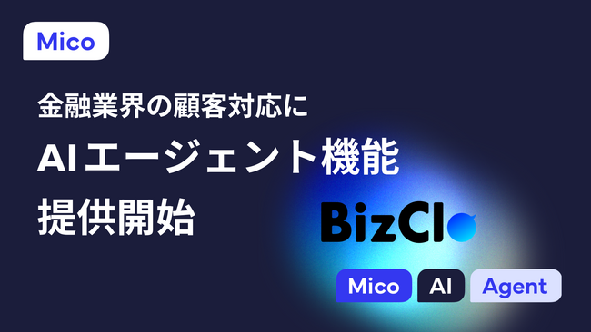 株式会社Mico(本社:大阪市北区、代表取締役社長:山田 修)は、提供するLINEビジネス1to1チャット『BizClo(ビズクロ)』において、金融機関の顧客対応プロセスに沿ったAIエージェント機能を新たに提供開始したことをお知らせいたします。