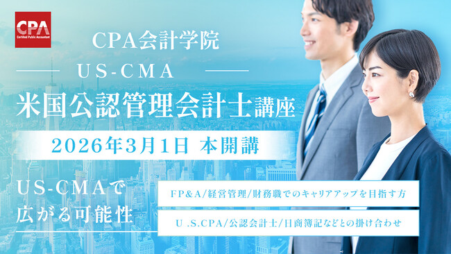 この度、公認会計士資格スクール「CPA会計学院」では、3月1日より米国公認管理会計士(US-CMA)講座を開講することをお知らせいたします。昨年11月末よりモニター生を募る形で講座運営を行い、そのモニター生の声を反映したコンテンツで本開講の運びとなりました。