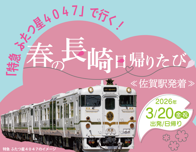 (1)ツアー名称:「特急 ふたつ星4047」で行く!春の長崎日帰りたび《佐賀駅発着》(2)出発日:2026年3月20日(金・祝) 日帰り