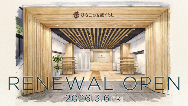 今回のリニューアルでは、野村寿子の作業療法士としての専門知識と実体験に基づく知識と技術を活かし、赤ちゃんから高齢者、身体に不自由さを抱える方まで、幅広い方々の暮らしに寄り添う商品や情報を提案。五感を通じて心身を整え、より健やかで豊かな日常を支える新たな拠点「ひさこの五感くらし」として展開してまいります。