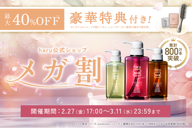 kurokamiスカルプ(haruシャンプー*1)でおなじみの、ヘッドビューティブランド「haru」を展開する株式会社nijito(本社:東京都港区、EC事業部:福岡市中央区)は、haruの公式Qoo10ショップにおいて、2026年2月27日(金)17:00~3月11日(水) 23:59まで開催される「Qoo10メガ割」に参加します。