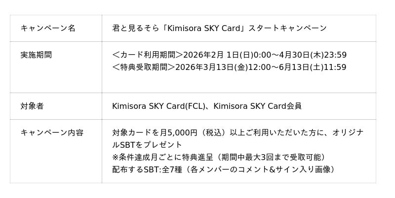 - アイドルグループ「君と見るそら」との提携カード「Kimisora SKY Card」にオリコ初のデジタル特典を付帯02/27 10:00