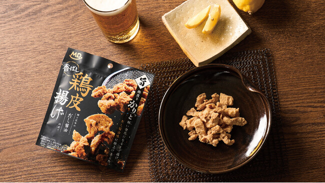 株式会社MDホールディングス(本社:大阪府東大阪市)は、国産鶏皮をカリっと揚げジューシーに仕上げたお菓子『香ばし鶏皮揚げ だし醤油』を、2026年3月2日(月)より、全国で発売いたします。
