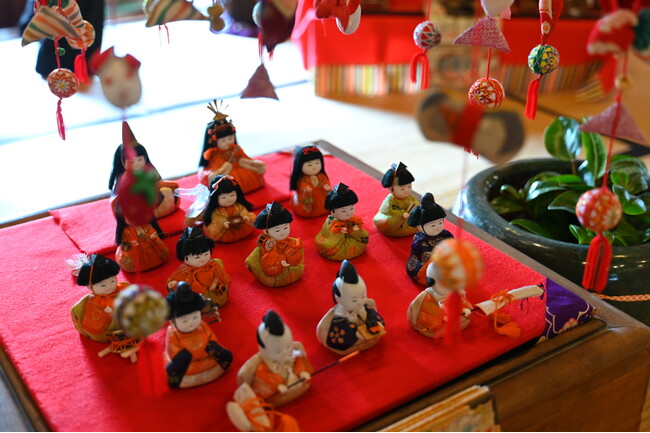 旧後藤家商家交流資料館で色鮮やかなひな人形がお出迎え
