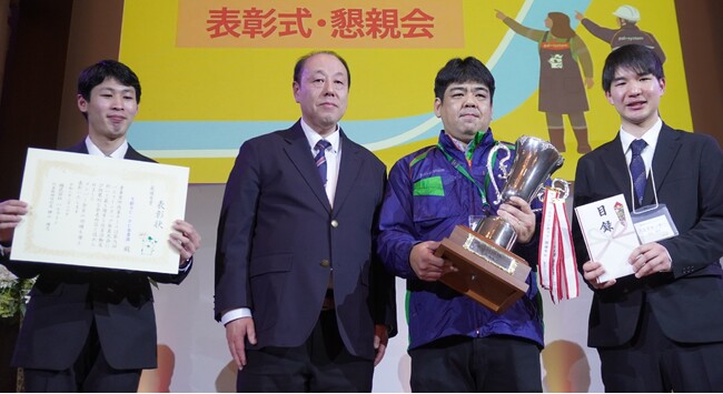 優勝カップを受け取った飯田高士職員は「多くの素晴らしい改善事例のなか、『現場を助けたい』という気持ちが最優秀賞の結果につながったのだと思います。次年度の第10回大会に向け、一人ひとりがさらに知恵を出し合い盛り上げていきましょう」と各事業所へエールを送りました。