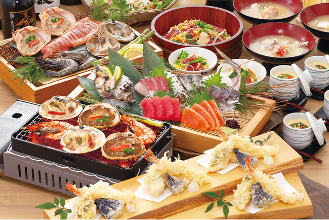株式会社大庄(東京都大田区/代表取締役社長:平 了壽)は、浜焼き海鮮居酒屋『大庄水産』24店舗にて、2026年3月1日(日)から6月30日(火)までの期間「春の宴会コース」を提供します。『大庄水産』は、全国の漁場や市場から直送する圧倒的鮮度の魚介を使用した豪快な漁師料理が人気の海鮮居酒屋です。そのような『大庄水産』の2026年春のコースは、物価高騰が続く中でも、より鮮度良く価値がある魚介類をできるだけリーズナブルに楽しんでほしいという理由から、各コースの品質はこれまで以上にしながら販売価格は思い切って昨年より500円値下げ。「番屋料理コース(6000円)」「大庄丸 大漁祝コース(5500円)」「大庄水産コース(5000円)」の3コースを飲み放題付きでラインナップします。比べてみるほどにわかる、他にはない品質本位の宴会コースです。