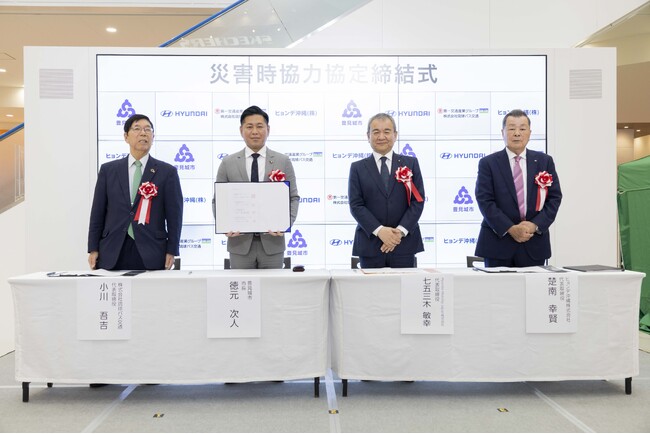 Hyundai Mobility Japan株式会社(本社:神奈川県横浜市西区みなとみらい、代表取締役社長:七五三木敏幸、以下ヒョンデ)、沖縄県豊見城市、株式会社琉球バス交通、ヒョンデ沖縄株式会社の4者は、自然災害発生時における連携・協力体制の強化を目的とした「災害時協力協定」を締結しました。