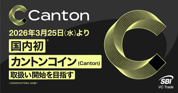 SBIホールディングス株式会社の連結子会社で暗号資産交換業および電子決済手段等取引業を営む SBI VCトレード株式会社(本社:東京都港区、代表取締役社長:近藤 智彦、以下「SBI VCトレード」)は、2026年3月25日(水)から国内初※となる「カントンコイン(Canton)」の取扱い開始を目指しておりますのでお知らせいたします。