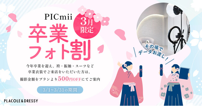セルフ写真館『PICmii』PLACOLE&DRESSY プロデュースの横浜店・名古屋店・大阪店にて3月限定『卒業フォト割』実施決定!