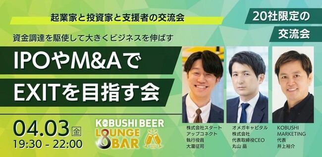 【4月3日(金)19:30~】IPOやM&AでEXITを目指す会/主催:KOBUSHI MARKETING×オメガキャピタル×スタコネ