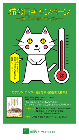 株式会社レビックグローバル(本社:東京都港区、代表取締役社長:柏木 理)が運営する一般社団法人 日本アンガーマネジメント協会(本社:東京都港区、代表理事:戸田久実)は、2月22日の「猫の日」に合わせて実施したSNS投稿キャンペーン『#猫に学ぶ怒りの温度計」の選考結果を、2月28日(バカヤローの日)に発表します。