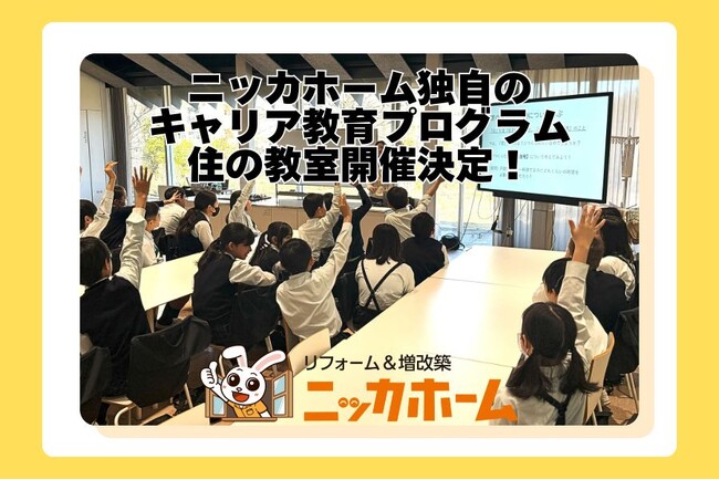 住宅リフォーム事業を展開する ニッカホーム株式会社(本社:愛知県名古屋市緑区篭山、代表取締役社長:西田裕久、以下 ニッカホーム)は、子どもたちが「建築・住環境・働くこと」について考える機会を提供する独自のキャリア教育支援プログラム「住の教室」を、2024年度より継続的に実施しています。