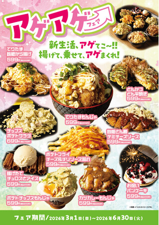 全国で飲食店を展開する株式会社FS.shakeが運営する「もんじゃ酒場だしや・鉄板焼き酒場だしや」は、2026年3月1日より、新生活シーズンを盛り上げる期間限定フェア『アゲアゲフェア』を開催いたします。