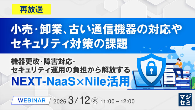 マジセミ株式会社は「【再放送】小売・卸業、古い通信機器の対応やセキュリティ対策の課題」というテーマのウェビナーを開催します。