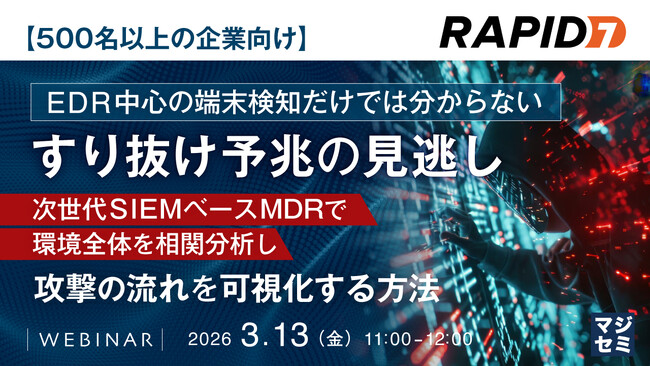 マジセミ株式会社は「【500名以上の企業向け】EDR中心の端末検知だけでは分からない、すり抜け予兆の見逃し」というテーマのウェビナーを開催します。