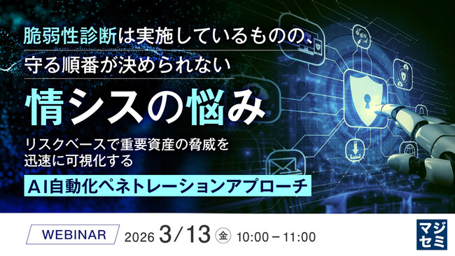 マジセミ株式会社は「脆弱性診断は実施しているものの、守る順番が決められない情シスの悩み」というテーマのウェビナーを開催します。