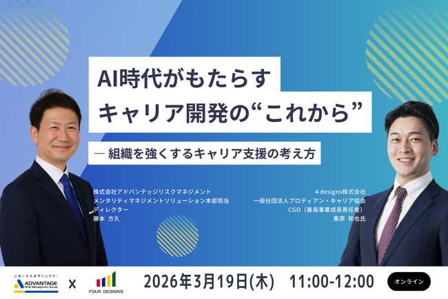 株式会社アドバンテッジリスクマネジメントは、2026年3月19日(木)に、人事・労務部門のご担当者様/責任者様、人材育成・人材開発のご担当者様/責任者様を対象としたWebセミナー「AI時代がもたらすキャリア開発の“これから”― 組織を強くするキャリア支援の考え方」を開催いたします。