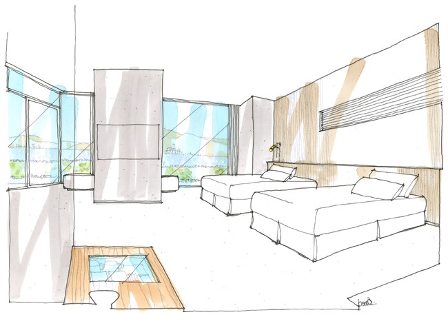 唐津湾を望む海辺の静寂に包まれながら、「音」と「余白」に身を委ねる-。 新客室 「ソノテラス」 は、“No watch, No noise”のコンセプトを最も象徴する客室。さざなみの音、潮風、夕陽のきらめき、刻々と移ろう明暗。そのすべてが五感を満たす、3室限定の特別な空間です。