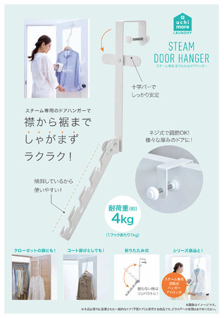 襟から裾までしゃがまず、ラクにスチームケア。「スチーム専用折りたたみドアハンガー」を3月2日より新発売