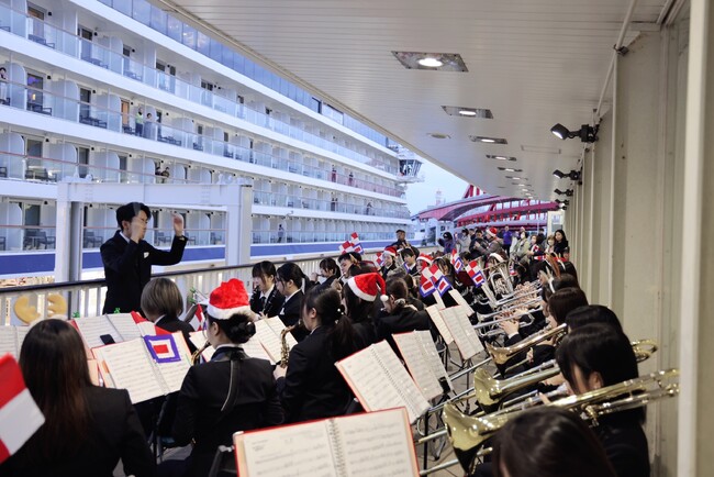クリスマスシーズンに乗船客を盛り上げる吹奏楽部の演奏(12月20日撮影)
