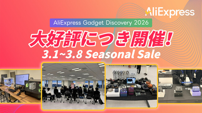 (フォーエム)と共同で、2026年2月26日(木)にFourM本社(東京・六本木ヒルズ森タワー)にて、デジタル・テクノロジー分野における最先端製品の体験会である「AliExpress Gadget Discovery 2026」を開催しました。また、3月1日(日)17:00からは「AliExpress Seasonal Sale」を開催し、テクノロジー製品とAliExpressならではの特典が融合した特別な購買体験を提供しています。