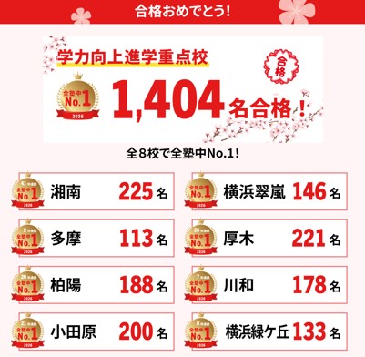 【2026年度神奈川県公立高校入試】学力向上進学重点校全8校で合格者数全塾中No.1を達成