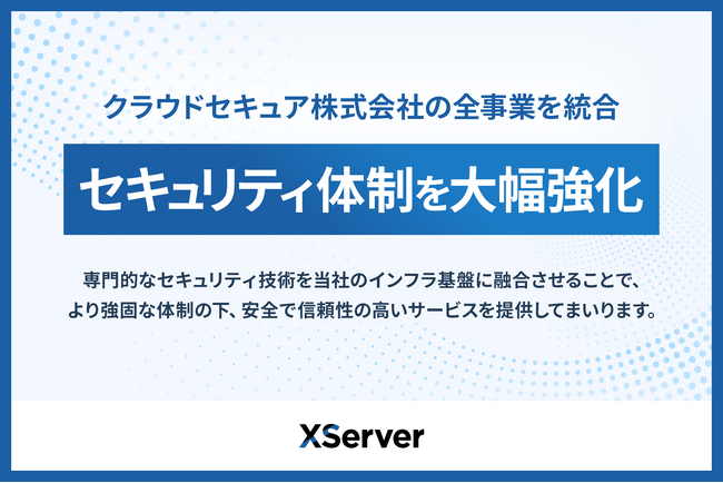 エックスサーバー株式会社(所在地:大阪市北区、代表取締役:小林 尚希)は、2026年3月1日付で、グループ内でセキュリティ事業を担うクラウドセキュア株式会社(以下「クラウドセキュア」)の全事業を統合しました。