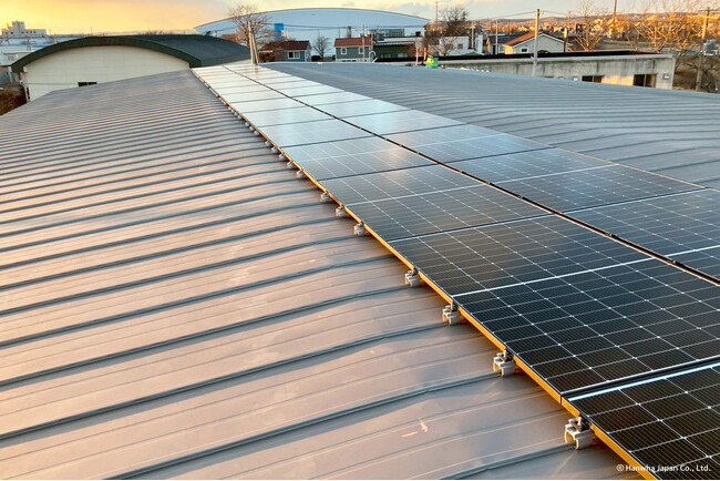 既設屋根に設置された太陽光パネル。釧路の景観に溶け込む