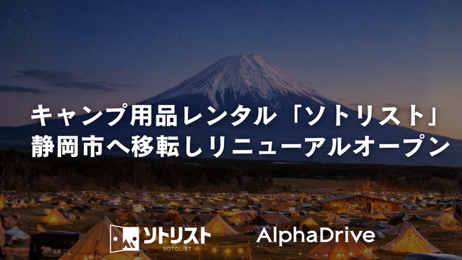 株式会社アルファドライブ(以下、AlphaDrive)は、2025年12月にキャンプ用品レンタル事業「ソトリスト」を事業承継いたしました。そしてこの度、ソトリストは店舗機能の強化とサービス向上を目的にリニューアルを実施し、「ソトリスト静岡店」として新たにオープンいたします。