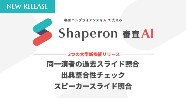 製薬コンプライアンスをAIで支える株式会社シャペロン(本社:東京都世田谷区、代表取締役:阪本怜)は、講演会スライドおよびプロモーション資材の審査をAIが代行・支援する「Shaperon 審査AI」の正式版をリリースし、大幅な機能アップデートを実施いたしました。