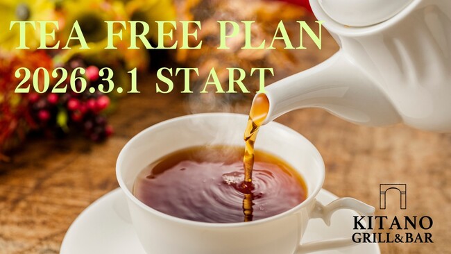 GLION GROUP(ジーライオングループ/所在地:兵庫県神戸市、代表取締役:菊地秀武)が運営する神戸北野ノスタ内のKitano Grill & Bar(キタノグリルアンドバー/所在地:兵庫県神戸市)は、2026年3月1日(日)より「ティーフリープラン」を販売いたします。