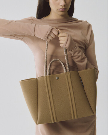 今回は、洗練された佇まいを引き立てる特別なカラーパレットをまとってラインナップ。外側はミニマルに、内側にはさりげない彩りを。バッグを開けた瞬間に心が弾むような配色を施しました。肩掛けとハンドキャリーの両方に対応するダブルハンドル仕様により、シーンやスタイルに合わせた持ち方が可能に。軽量で柔らかなネオプレン素材の心地よさも相まって、日常のさまざまなシーンに寄り添う新作です。