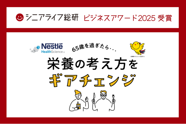ネスレ日本株式会社 ネスレ ヘルスサイエンス カンパニー(本社:兵庫県神戸市、カンパニープレジデント:中島 昭広、以下「ネスレ ヘルスサイエンス」)が主導する産学官連携のプロジェクト「65歳を過ぎたら…栄養の考え方をギアチェンジ」に関する発表が、シニアマーケティングメディア「シニアライフ総研(R)」(運営:ルーツ・オブ・コミュニケーション株式会社、代表取締役:渡瀬 英治)による「シニアライフ総研(R)ビジネスアワード2025 ビジネスモデル賞」を受賞しました。